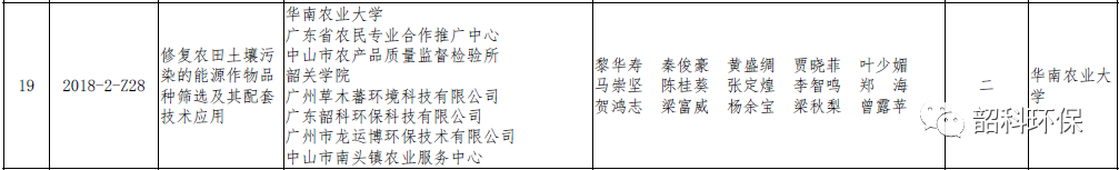 我司参与“修复农田土壤污染的能源作物品种筛选及其配套技术应用项目”获得2018年度广东省农业技术推广二等奖