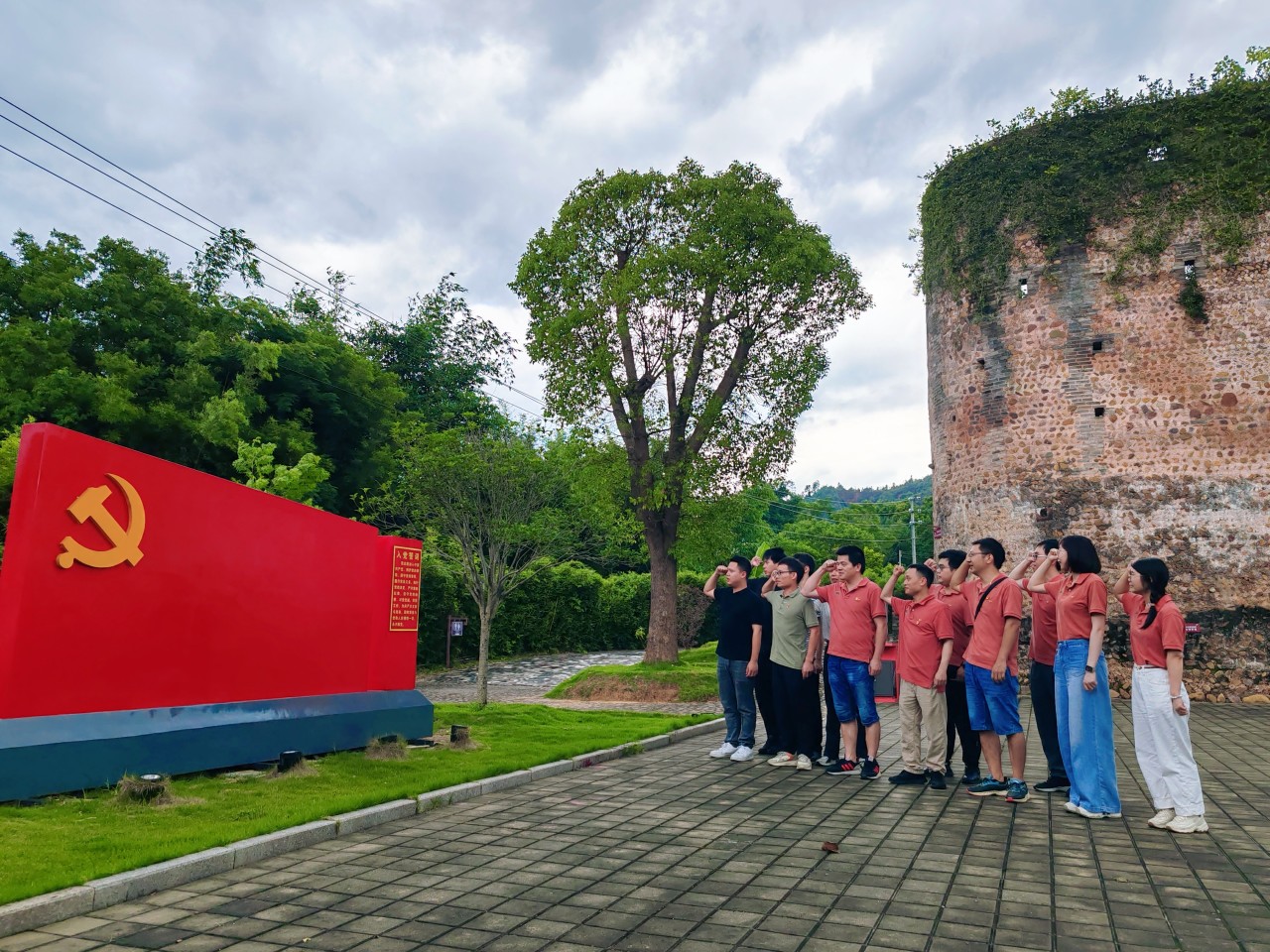 参加活动的党员同志们一同参观了广东省委机关旧址——红围,通过观看宣传栏里留下的珍贵历史照片和文字记载的历史变迁,了解这座近200年历史的围楼,历经岁月的沧桑与战火的洗礼至今仍然屹立不倒,感受在那血雨腥风的岁月里,中共广东省委从这里发出的红色电波,保持着与党中央的密切联系,指挥南方地区的抗日战争工作。随后,大家在红围前,面对党旗庄严地举起右拳重温了入党誓词,缅怀老一辈革命先烈的峥嵘岁月,感悟先辈不怕牺牲的英雄事迹,激发党员奋斗精神和干事创业动力。